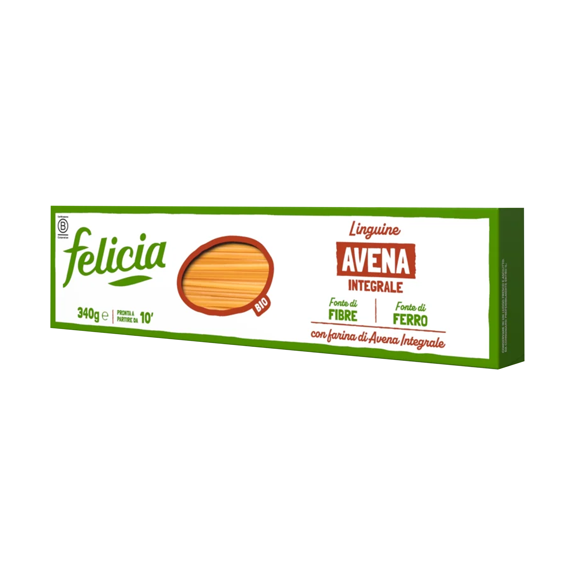 Ekologisk linguine från Felicia gjord på fullkornshavre. Pastan är glutenfri och fiberrik.