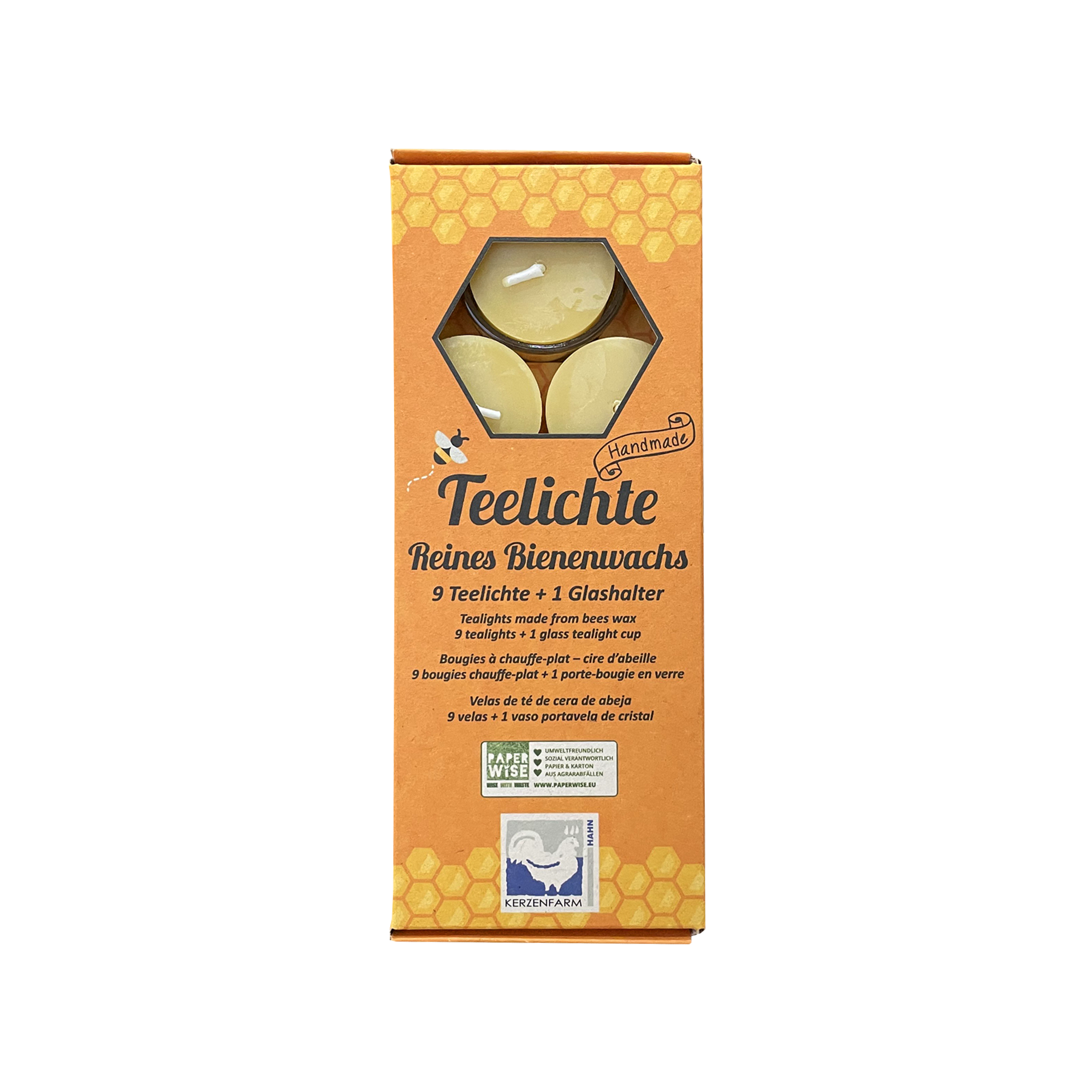 9 stl bivax-värmeljus utan aluminium, plus en glas som hållare.