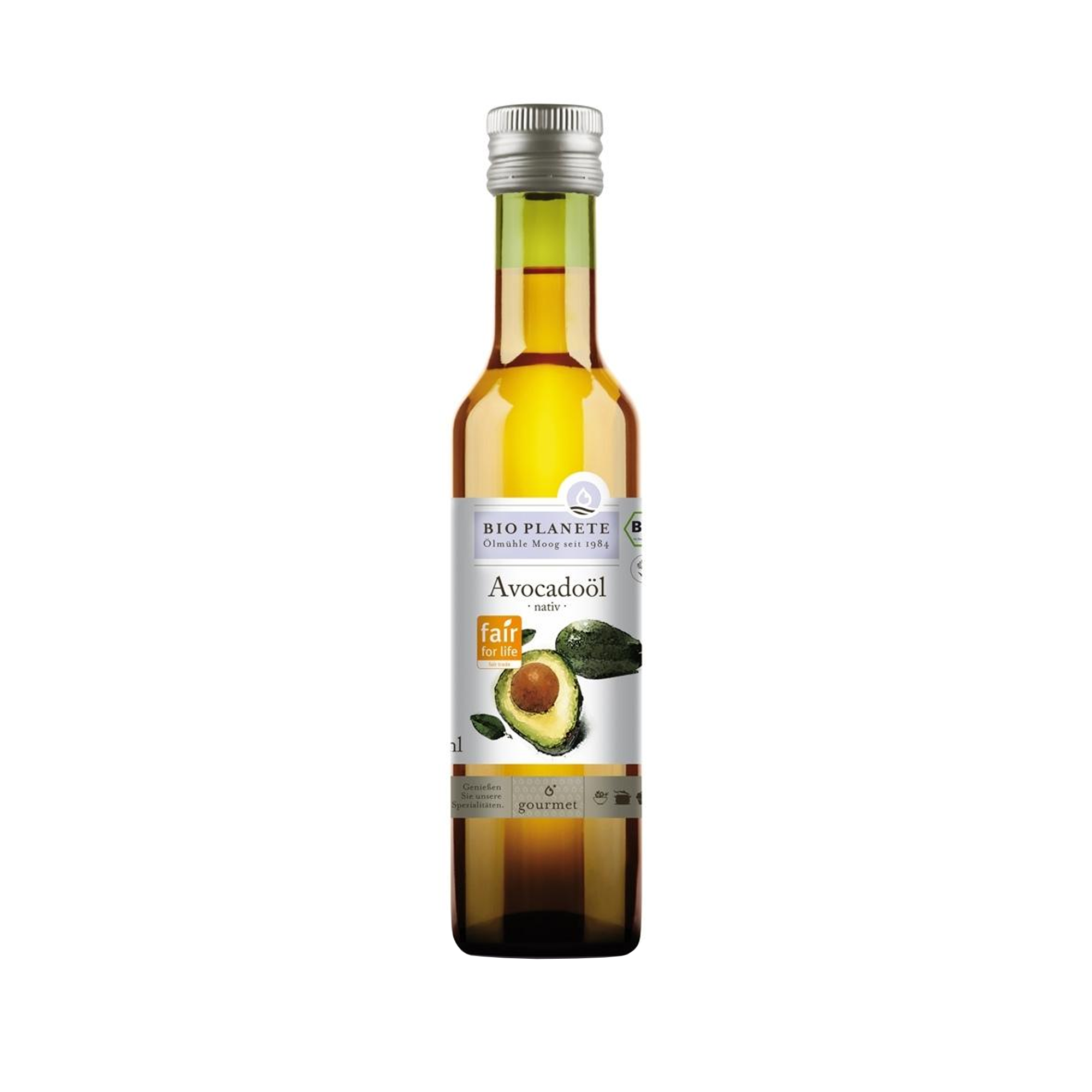 BIO PLANÈTE Virgin Avocado Oil odlades i enlighet med höga ekologiska standarder och är rättvist handlad. Genom varsam kallpressning bevaras de värdefulla näringsämnena, såsom E-vitamin, helt.