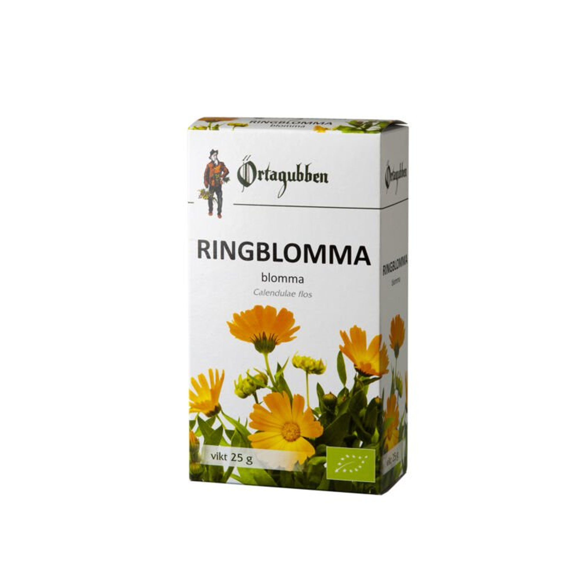 Ringblomma blommar från juli till september. Arten hör urspungligen hemma i Medelhavsområdet. Första fynduppgift som förvildad är från Skåne och publicerades 1780, men arten är känd redan under medeltiden (Hylander 1971). Användning. Ringblomma odlas som prydnadsväxt och som snittblomma. Detta är Örtagubbens eget varumärke. Örtagubbens egna örter kommer huvudsakligen från utvalda ekologiska odlare i Europa.