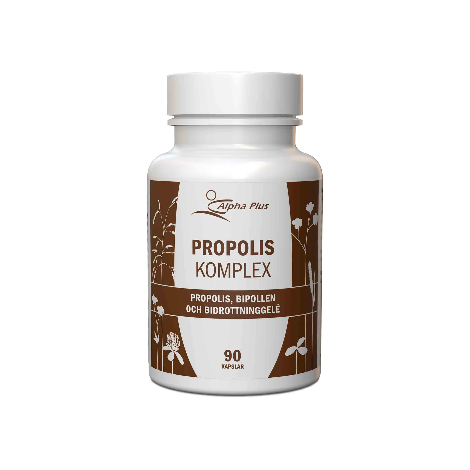 Propolis, eller bikitt, är en blandning av växtharts från träd, pollen och frön som bina tuggat samman med sin saliv. Det består av mer än 80 naturliga ämnen: i sammansättningen ingår bland annat E-vitamin, A-vitamin och B-vitaminer, alla mineraler och nästan alla aminosyror. Bipollen är klumpar av hanfröer och nektar från de växter som blivit besökta av biet. Bipollen innehåller över 200 bioaktiva ämnen, 16 vitaminer, 27 mineraler, och 22 aminosyror. Dessa inkluderar A-vitamin, C-vitamin och E-vitamin. Bidrottninggelé är ett specifikt sekret skapat av bin för att föda bilarver som så småningom ska bli bidrottingar. Denna gelé är rik på proteiner och innehåller naturligt kollagen. Ingredienser: Propolisextrakt (5:1), bipollen, bidrottninggelé (3 % 10-HDA). Kapsel (vegetabilisk cellulosa). Innehåll per dagsdos om 1 kapsel: Propolisextrakt 250 mg Bipollen 200 mg Bidrottningsgelé 10 mg
