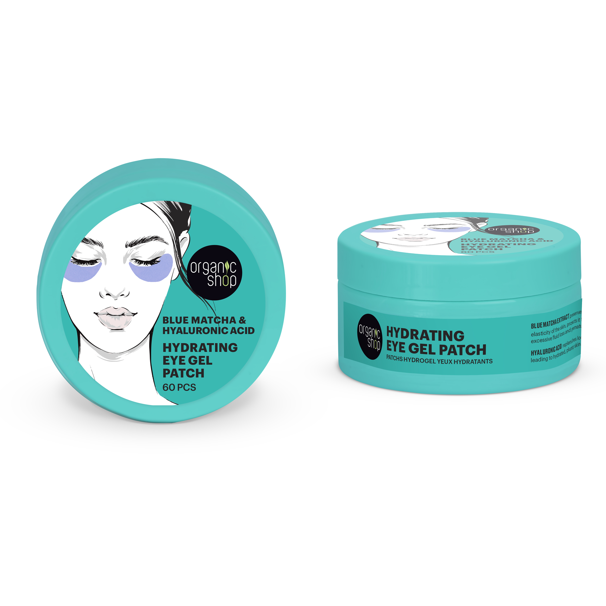 Organic Shops ögonpads Blå Matcha & Hyaluronsyra med ett unikt innehåll av fuktgivande hyaluronsyra och anti-age blå matcha för att mjuka upp huden, linjer och därmed förebygga en mer ungdomlig hud under ögat.