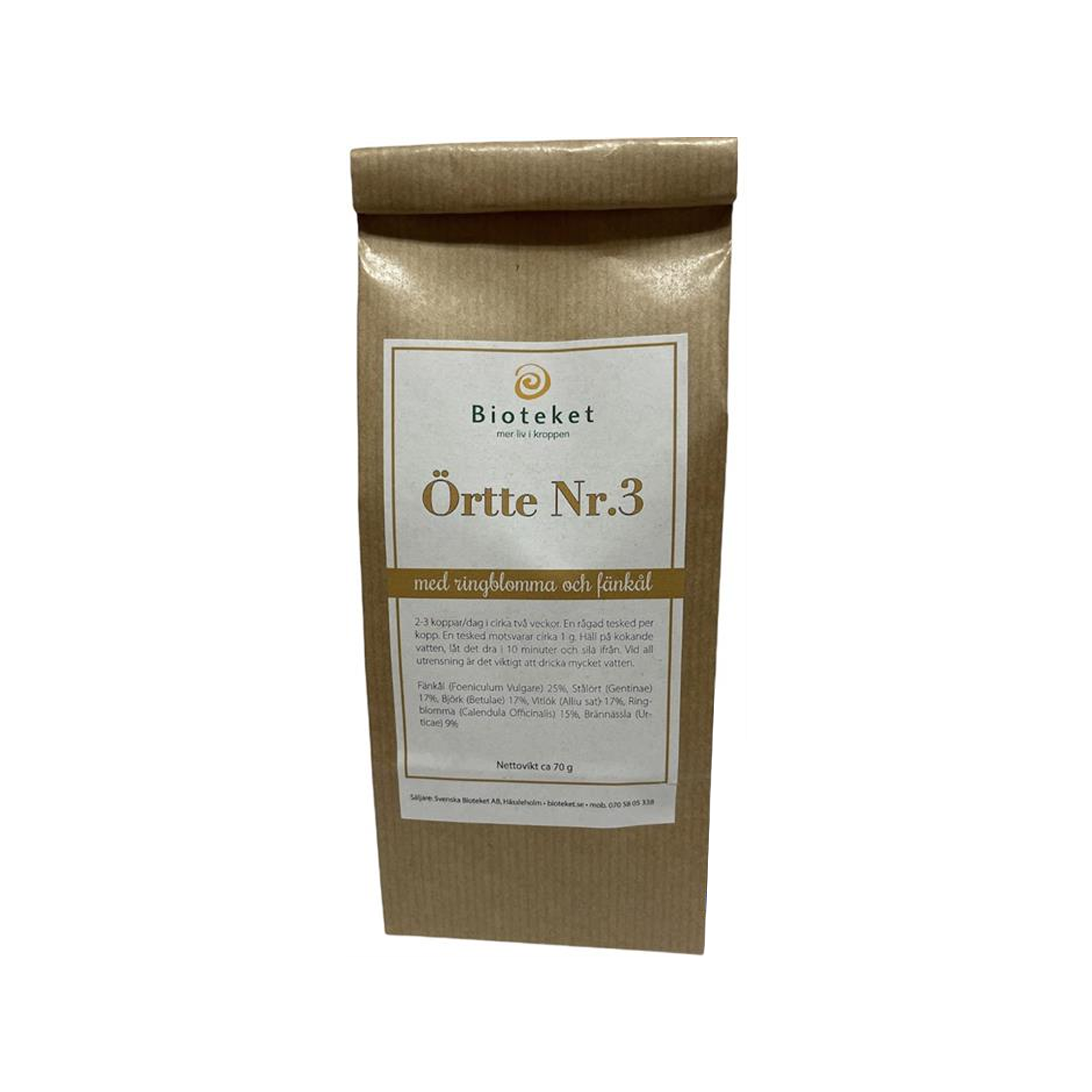 Innehåll: Fänkål (Foeniculum vulgare) 25%, Björk (Betulae) 20%, Kummin (carum carvi) 20%, Kamomill (chamomillae) 20%, Rölleka (millefoliu) 15%