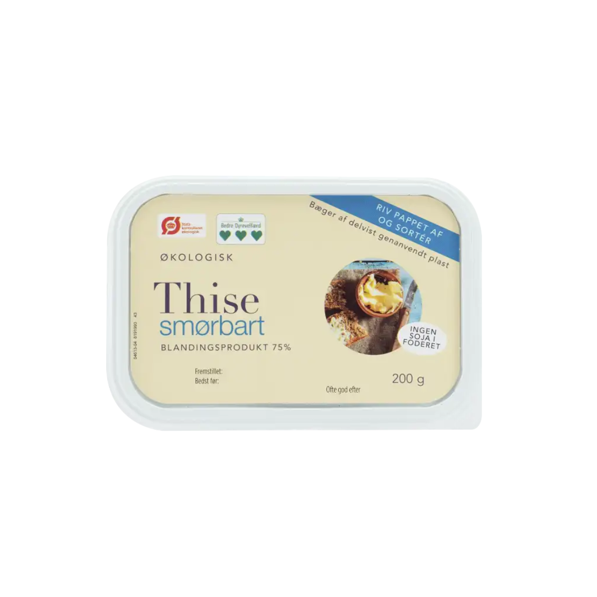 Ett ekologisk bredbar smör gjord på grädde från danska kor, ekologisk rapsolja och 1 % salt. Fördelningen är 3/4 fett från mjölk och 1/4 från rapsolja. Produkten är bredbar direkt från kylskåpet. Utsökt på nybakat bröd, i smörgåsar eller på dina varma frallor. Använd även bredbart smör för bakning och stekning.